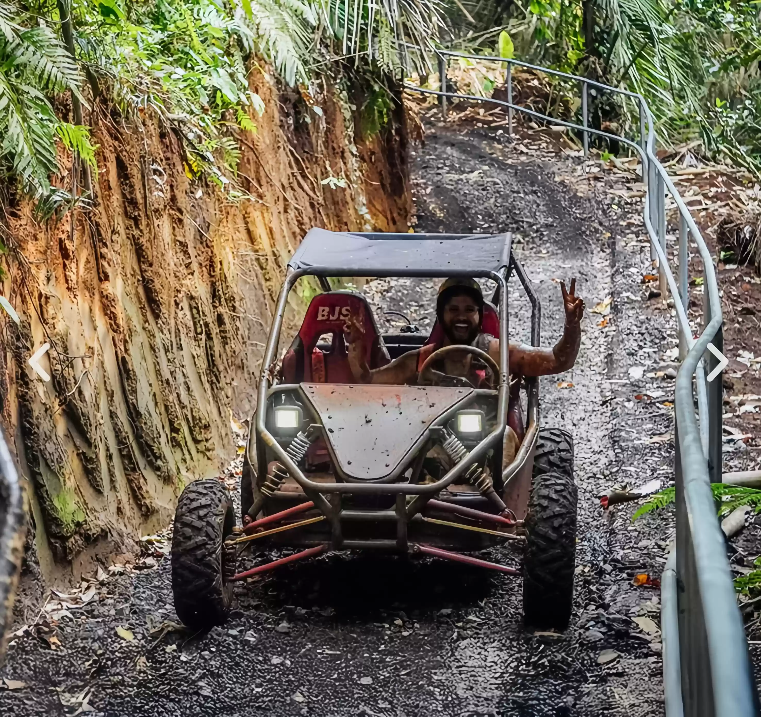 Experience the ultimate adventure ride! Conquer a 7 km track through jungle trails, rice fields, muddy paths, water splashes, and the thrilling Crocodile Cave. With easy-to-drive automatic buggies, safety gear, and professional instructors, this one-hour journey is perfect for thrill-seekers and families alike. Ready to feel the adrenaline?